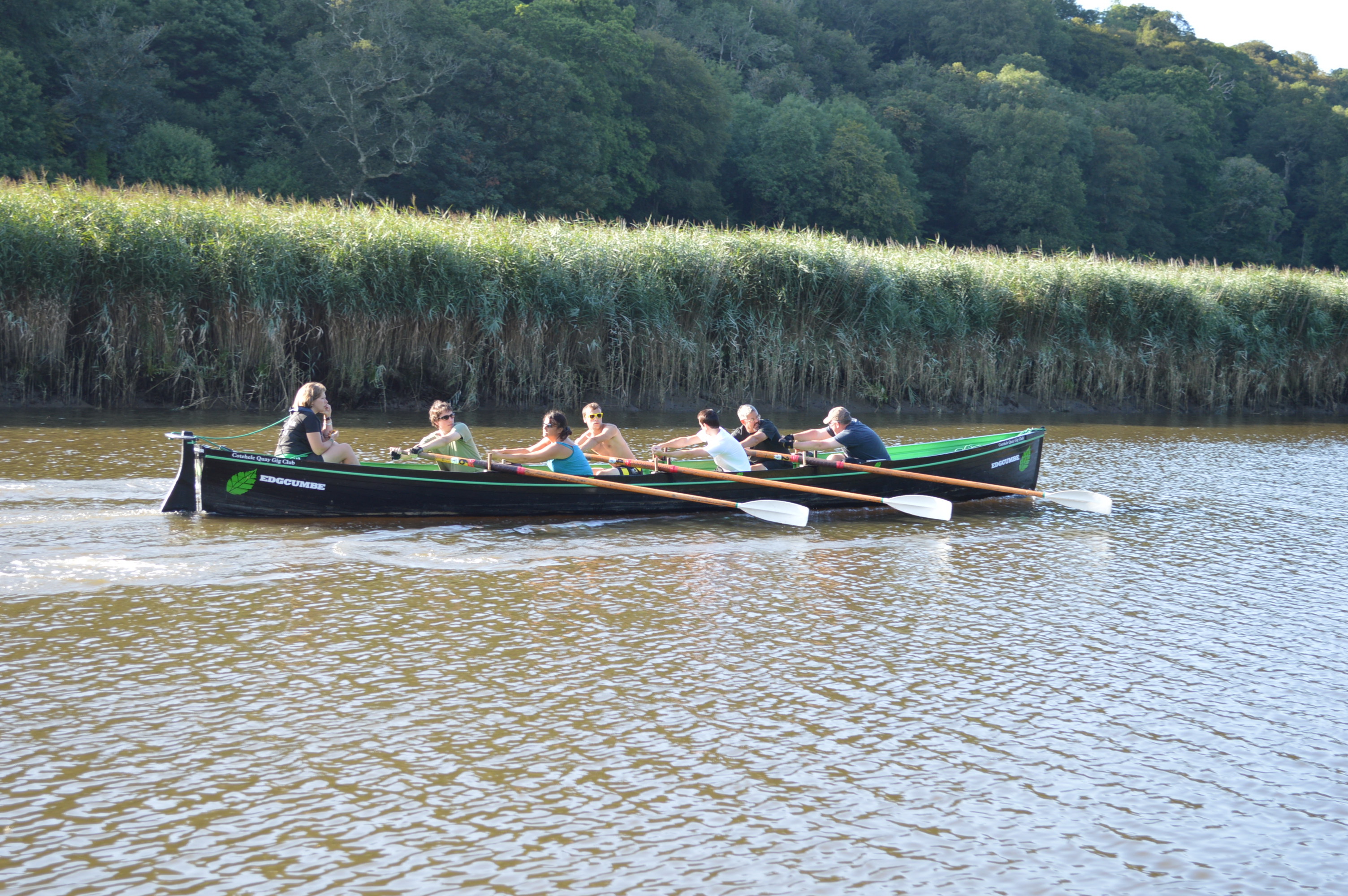 Round another bend and into a long straight. Two fisherman. Their boat is particularly noteworthy – (I can’t find a description of a Tamar seine boat but the Teignmouth boats are similar, although, like all traditional boats, they have their own slight differences). I wonder about the science and art of fishing here – the seasons, the tides, the weather – the effect of heavy rain, (the western side of Dartmoor drains into the Tamar), the changing currents, the masses of leaves that sink to the bottom of the river, the shifting pattern of the mud banks. What was it like when the mining industry was at its height and the river barges were constantly on the move? What was the pollution like? The fishing is restricted now, will there be any commercial boats in a few years time? What will be lost when they go? It’s that last question I was asking back down the river.