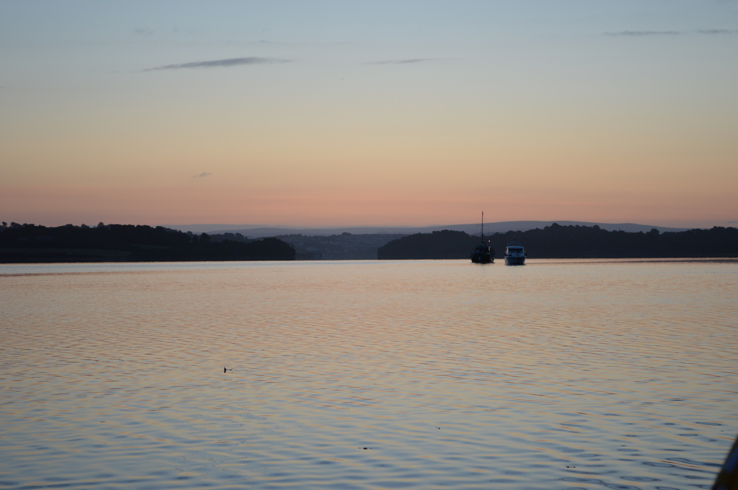 The strong tide takes us and we have to slow to thread carefully round the stern of one of the Torpoint ferries . . .
