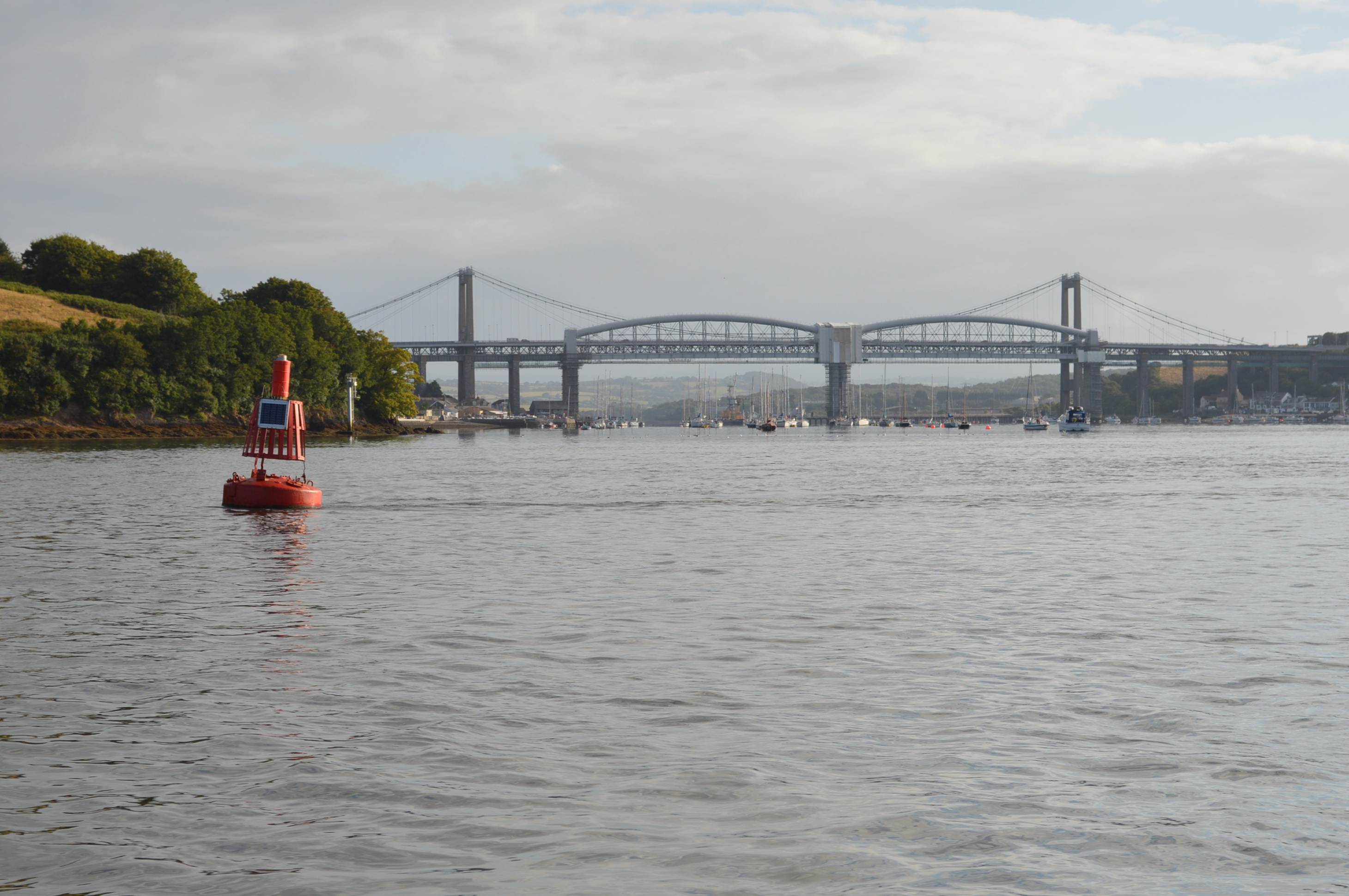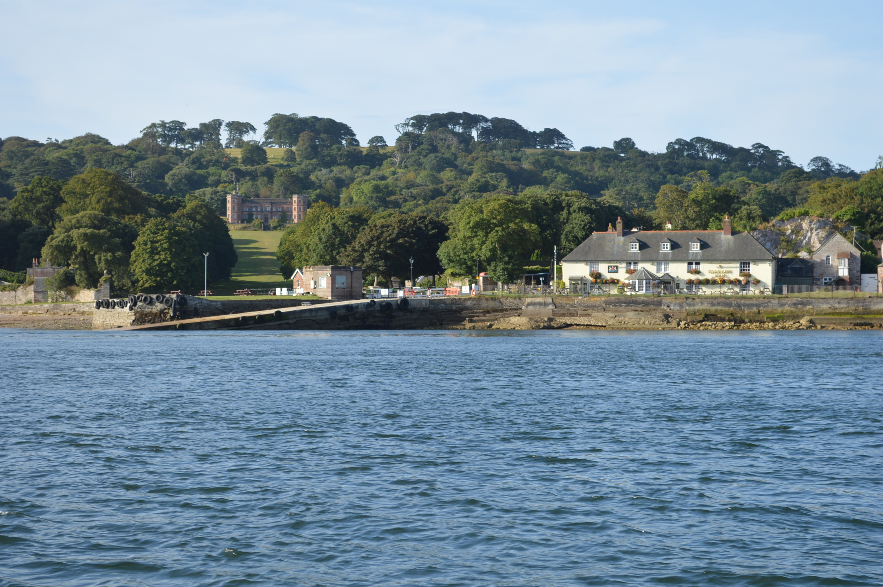 . . . past Mashford’s Boatyard on the Cornish side, and . . .
