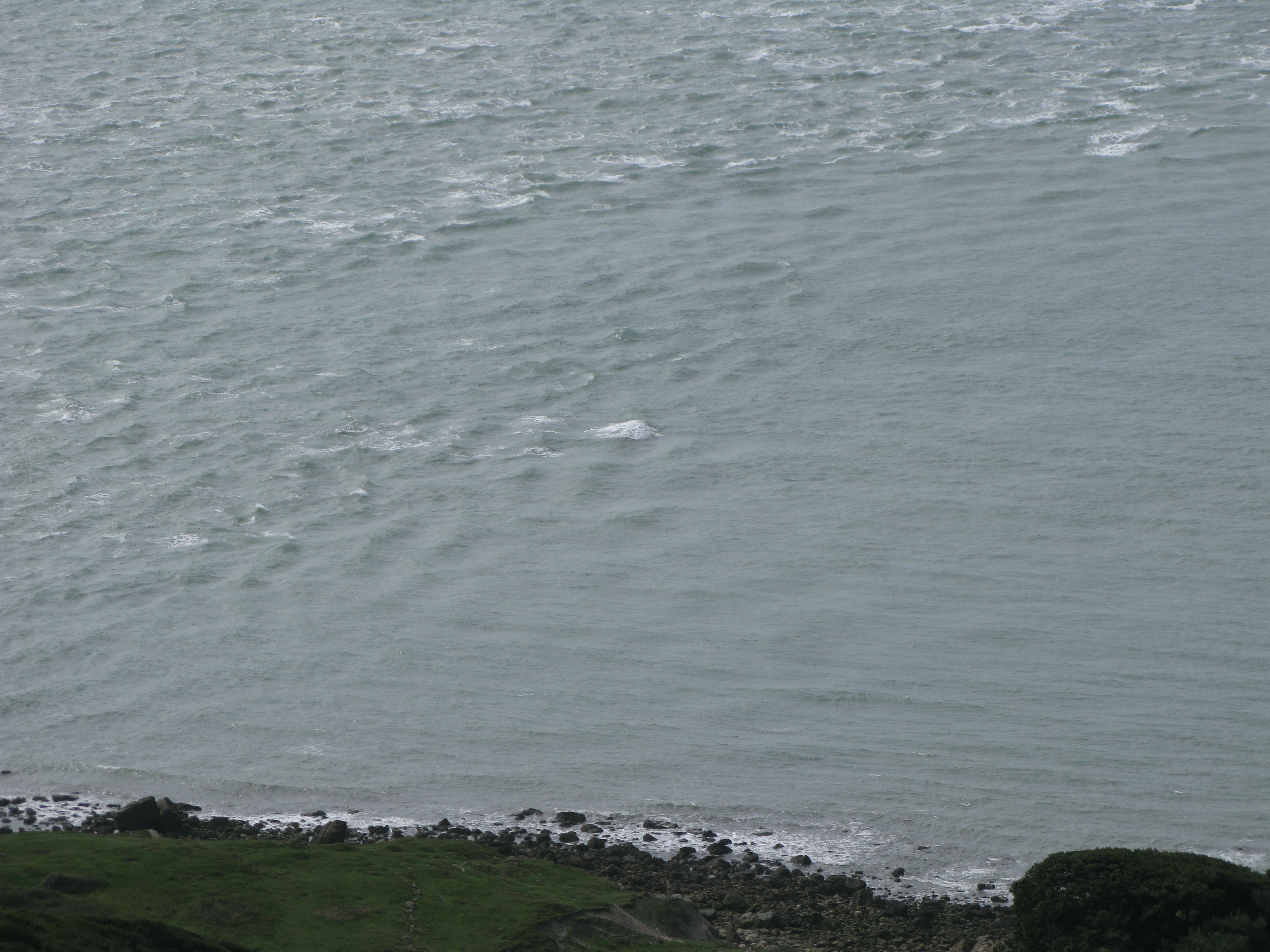 The tidal race was in full swing. The Channel Pilot: “Owing to the uneven bottom and the strong streams there are significant overfalls off St Catherine’s. These should be avoided, particularly under wind-against-tide conditions, and may be dangerous in bad weather. The race varies according to wind, tide and swell and is sometimes rougher or calmer than may be anticipated from the conditions.”