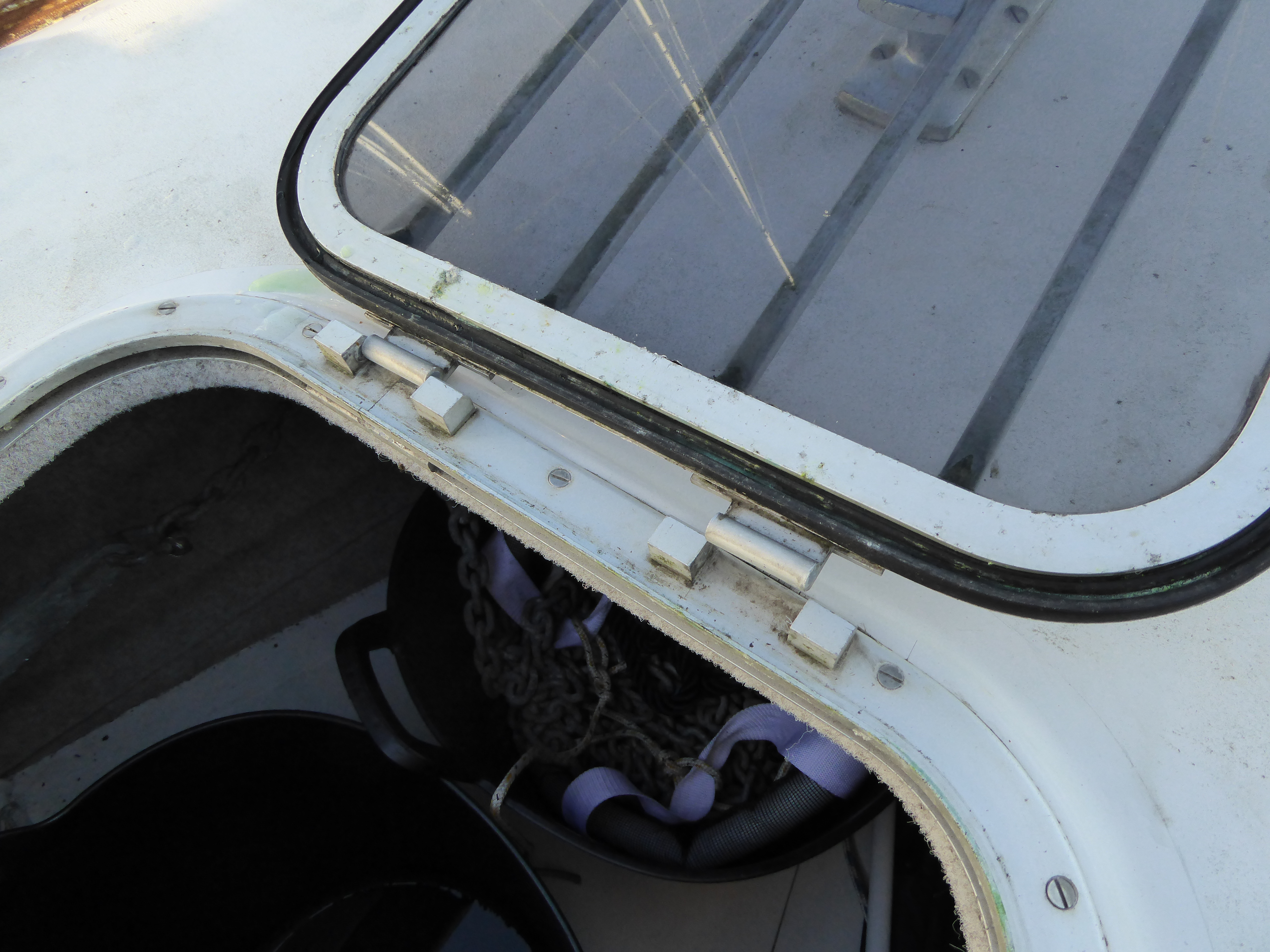The must-be-dones include the dramatic. In October, I found myself standing on the foredeck with the fore hatch in my hand. Don’t ask what I said. Gebo make a replacement hatch which can be opened from on deck. It will be fitted with the hinges aft rather than forward so that it doesn’t interfere with setting and stowing the anchor.