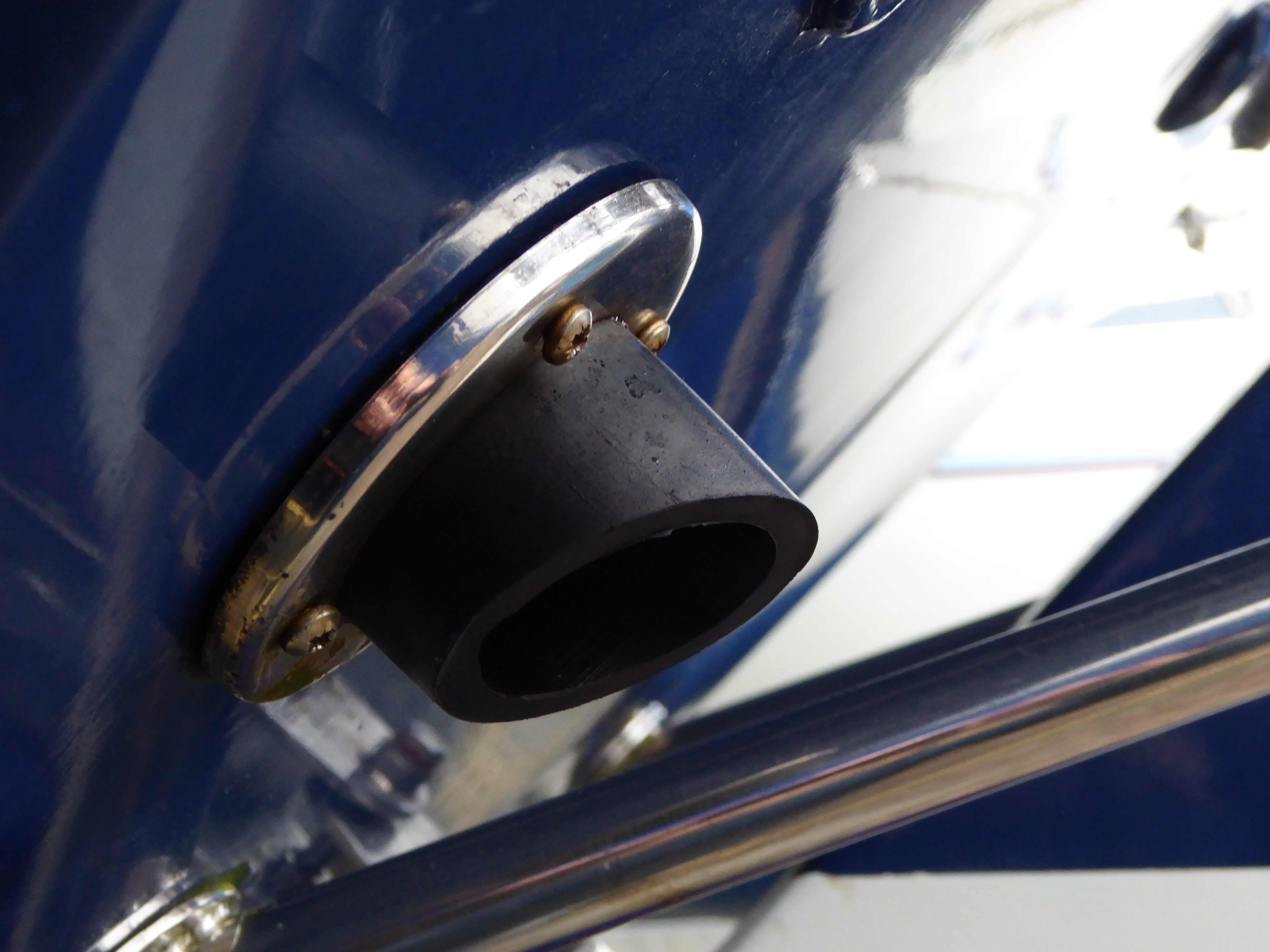 Also, water has been leaking round the exhaust outlet into the port lazarette for some time. I solved it with an excessive amount of silicone sealant in the summer but replacing the fitting with a more substantial seating inside the lazarette (see the screws in the image) will be more permanent.