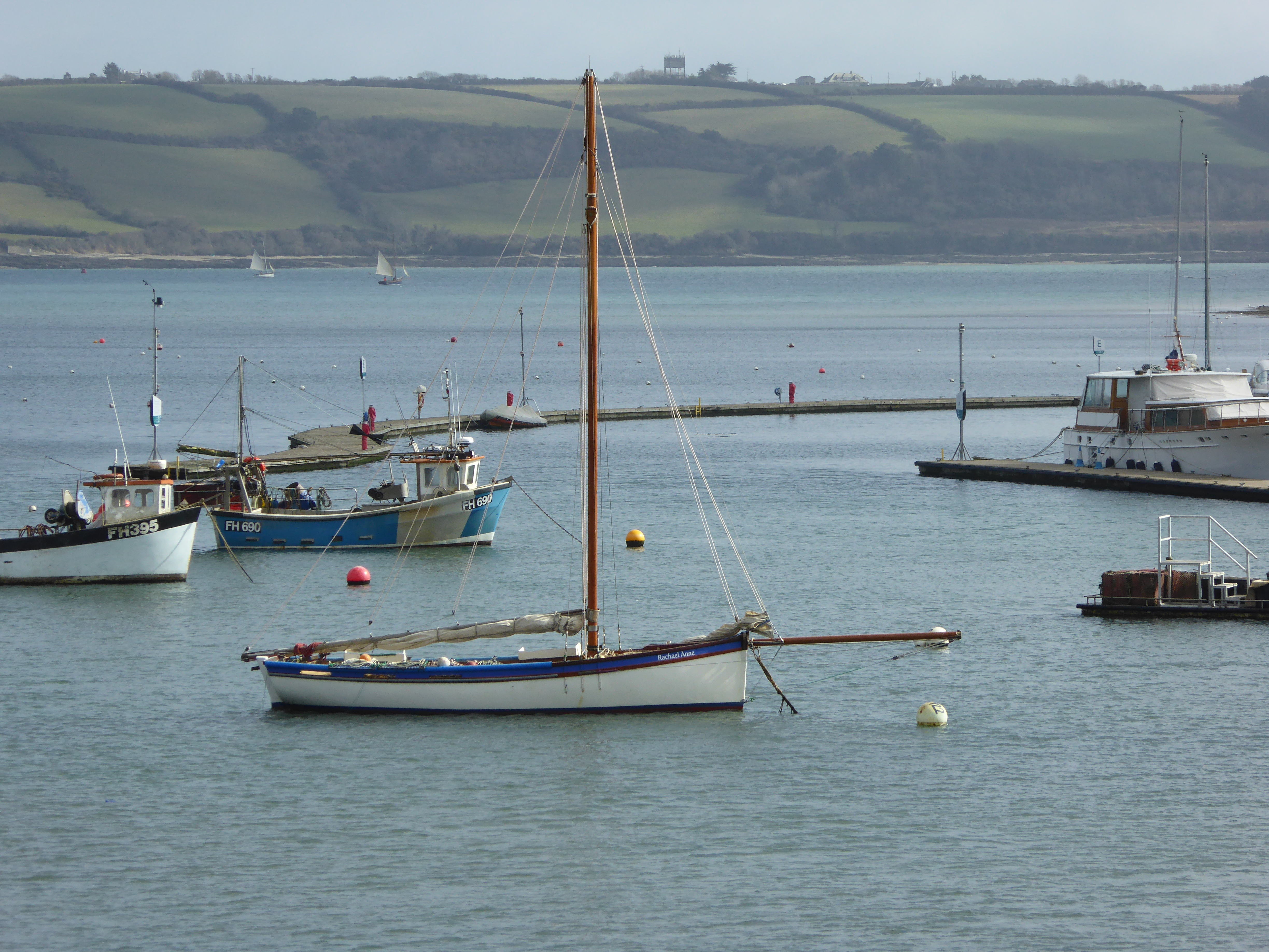 I admire this Falmouth working boat every time we walk this way. In the background two more working boats are dredging for oysters the only way they are allowed – under sail . . .