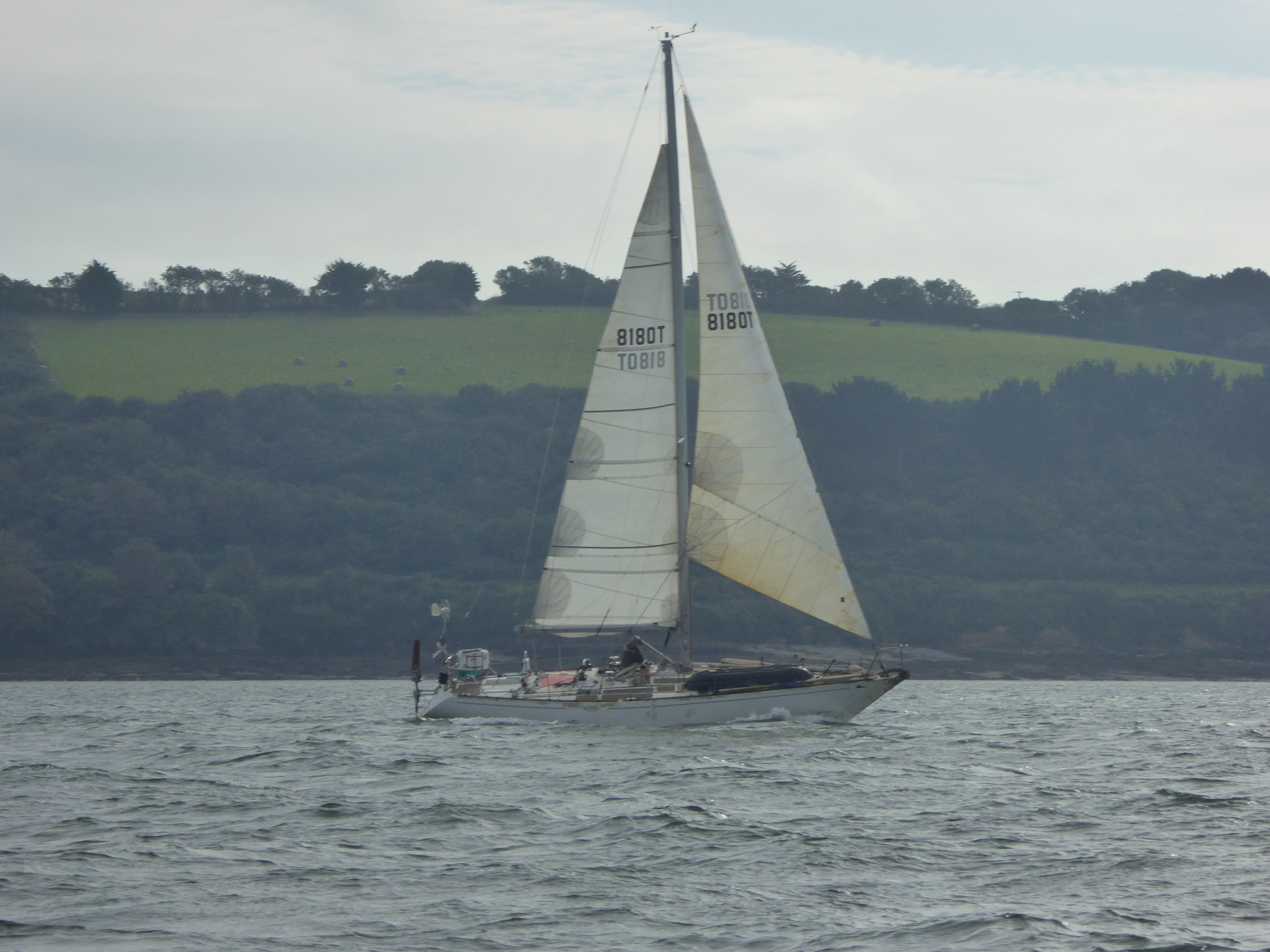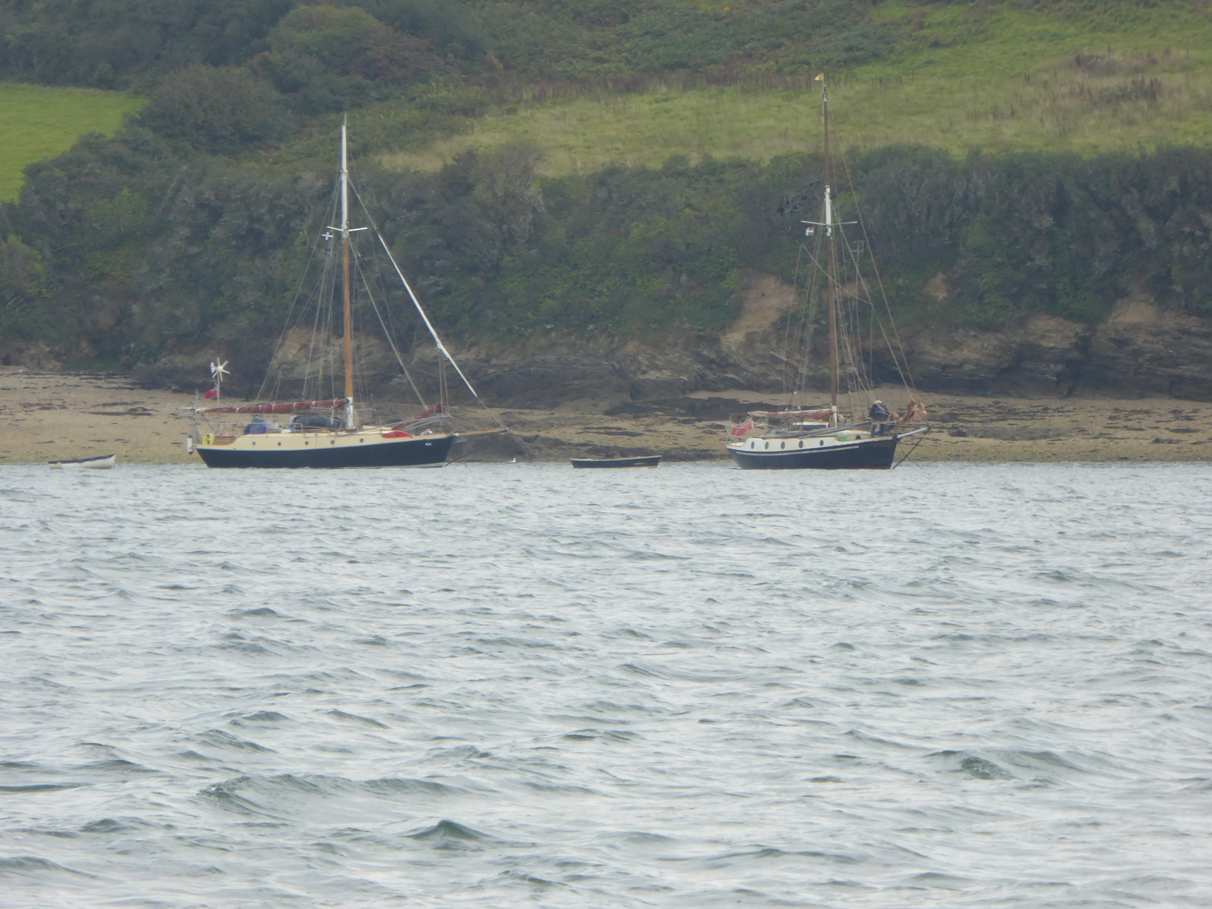 We are in Carrick Roads, Falmouth, apparently the third largest natural deep water harbour in the world. Whatever the “ranking”, it is huge and a great pleasure to sail in.