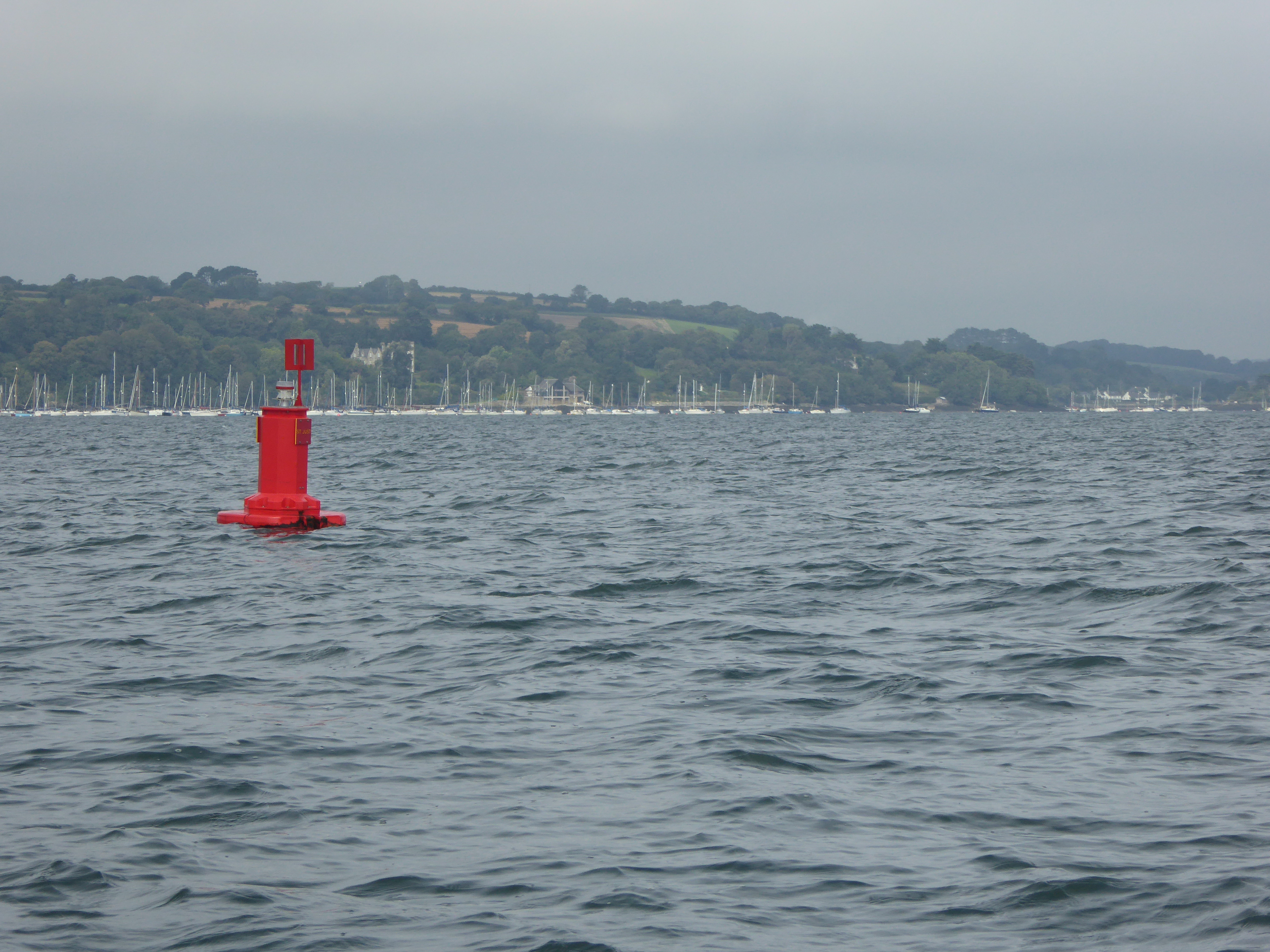 The deep water channel comes close to shore at St Just in Roseland and then turns north west across the Roads towards Restronguet Creek, which lies north of Mylor Creek with its forest of masts.