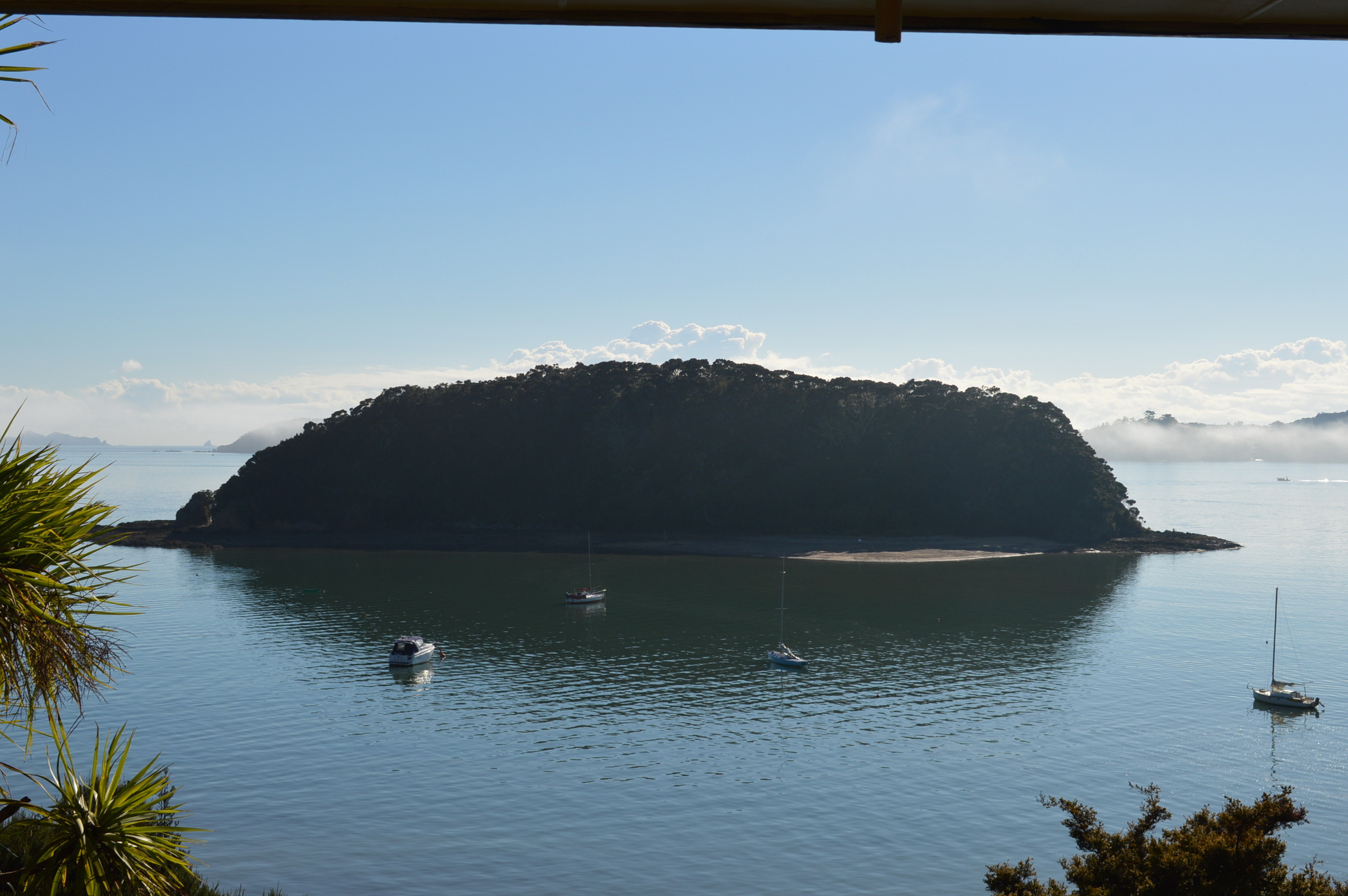 Paihia, Bay of Islands. Time on my hands. I got interested: morning mist ‘burning off’ – sun, water, ripples, tide, little wind, and an island in the sun.