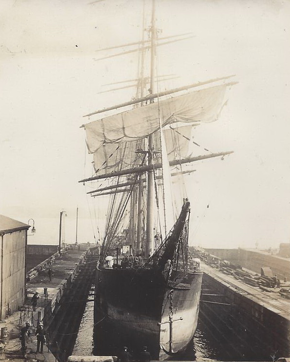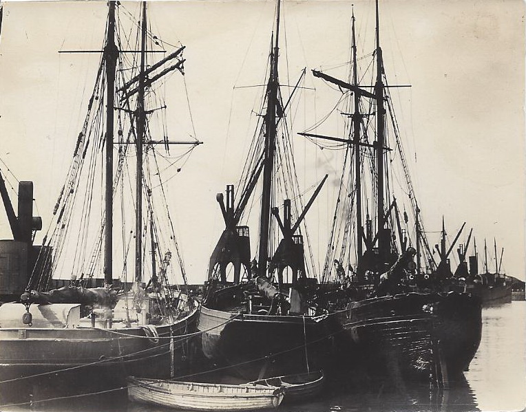They were collected by my grandfather and, I believe, some he inherited from his father, during his years as master of the Ceres, a Westcountry trading ketch. I have no record of whether he took any of these photographs himself but I note that most of them are of ships in ports that Ceres would have visited. The captions are copies of the notes on the back of the photographs – I have added the punctuation.