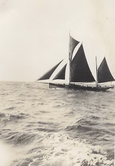 Suspect that the ‘unnamed ketch’ is a Brixham trawler and may be Leader, which is still in commission and operates from Brixham for sail training and charters. She was – is! – a big example of a Brixham trawler, and you may be able to decipher her registration number on the port side. If you can, I could identify her.