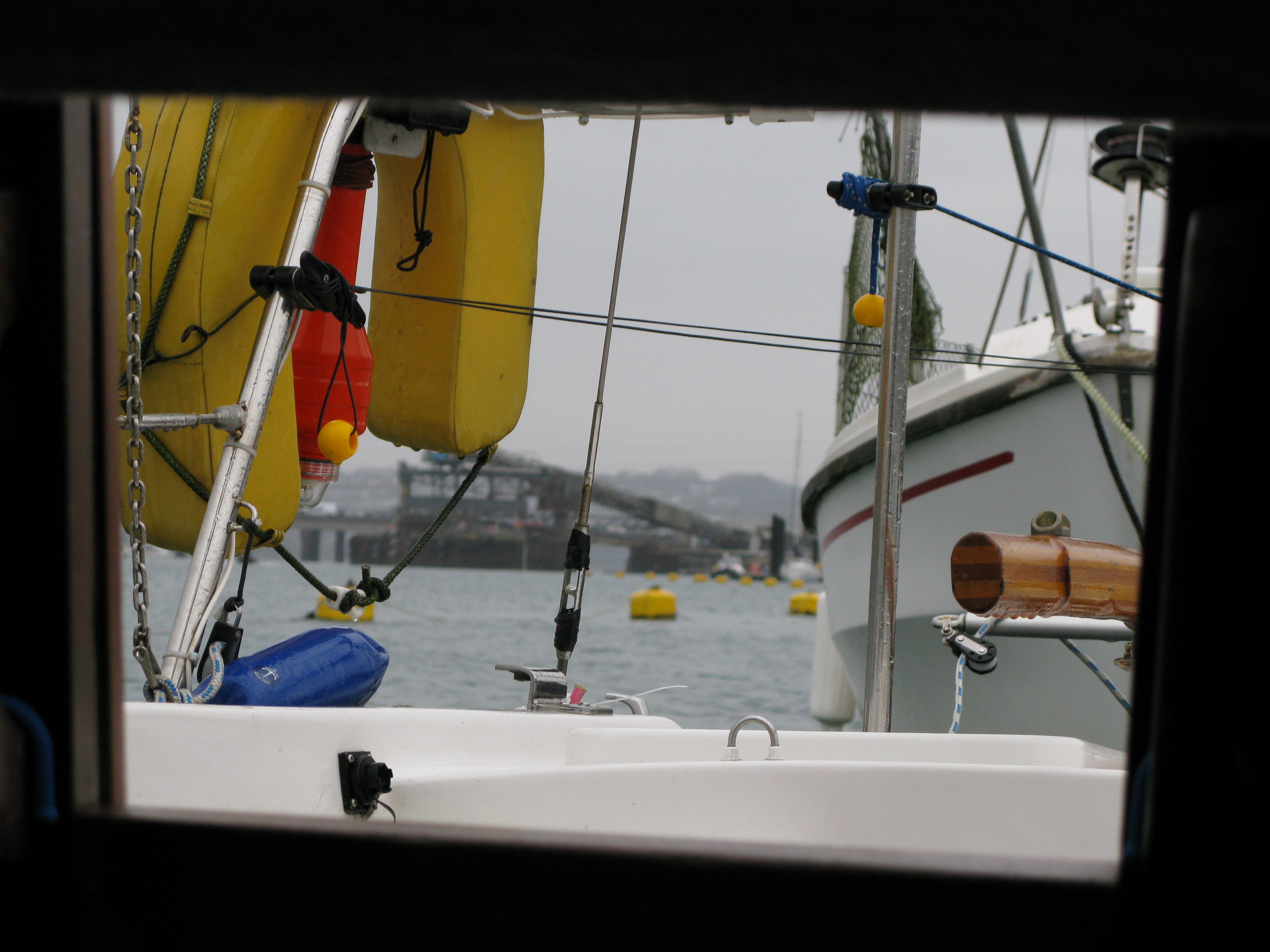 Also, the chain locker is too small. Feeding the rode back down the narrow hawspipe, I find the chain blocking the pipe and I am left with a length on deck. (Too much chain? Not enough locker). I have to go below and clear it. That works in a flat calm but it’s no fun having chain flaying around the deck in a sea while I struggle below. It also takes time to re-stow the anchor and rode; plus I want to keep the anchor off the deck. So I am trying out plastic bins of varying sizes (including a flexible laundry basket). We’ll see what works best.