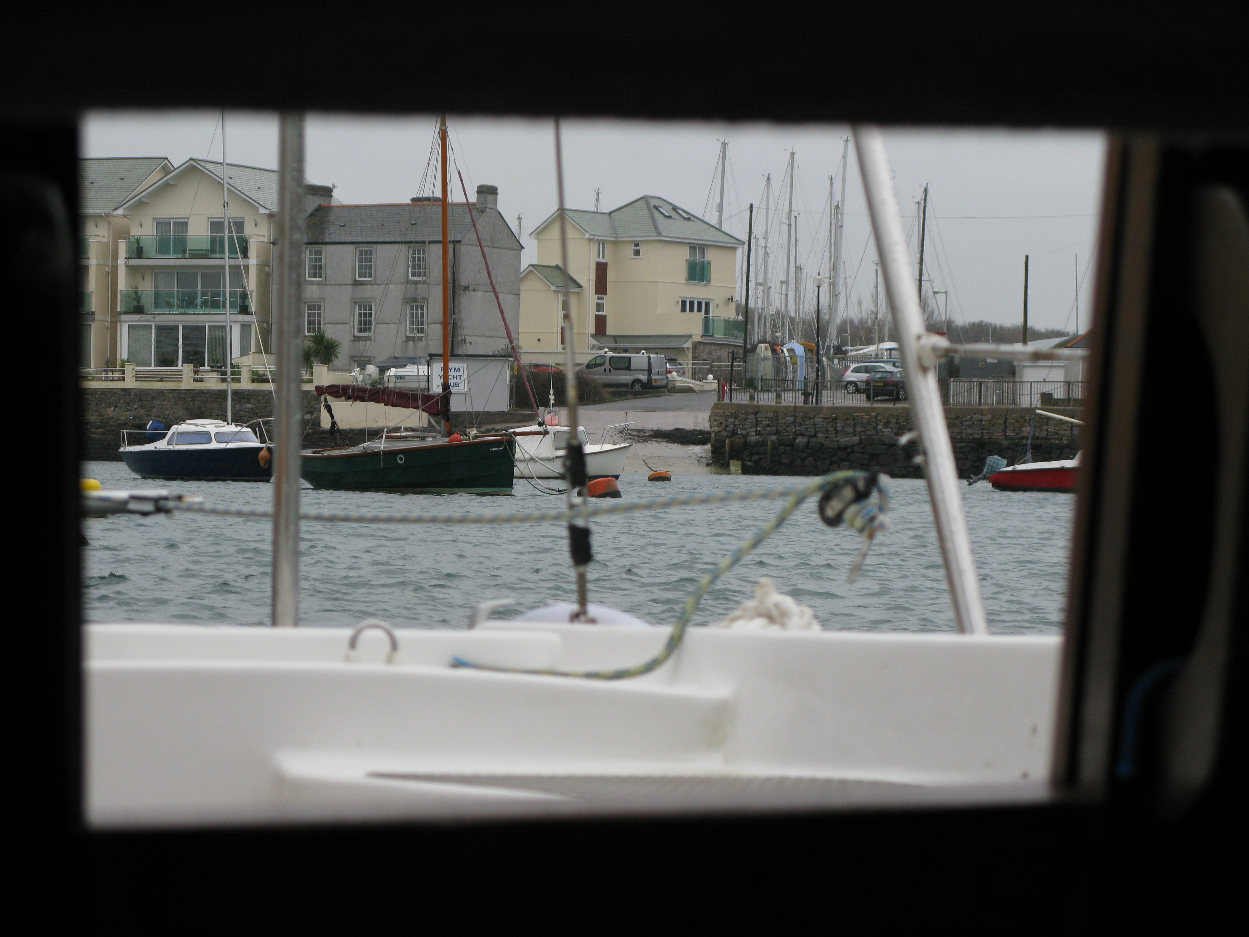 This seemed a good idea at the time because she would be protected from the worst of the winter weather but is proving awkward now because there is work to do on the rubbing strakes and access is poor.